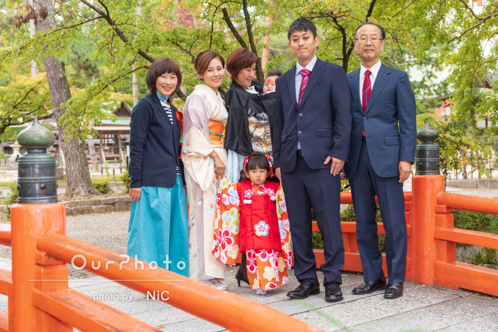 ご家族の自然体な姿が素敵!祖父母も一緒に神社でお宮参りと七五三の撮影OurPhoto アワーフォト。