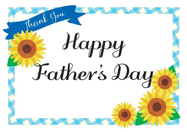メッセージカードテンプレート05「父の日にブルーのチェック柄にヒマワリのイラスト テキスト入り 」 ピーディーエフ・PDF 無料 ダウンロードテンプレートNAVI。