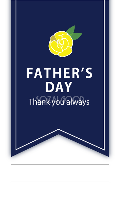 父の日メッセージカードデザイン_黄色いバラと紺色リボン飾りイラスト無料テンプレート80976素材Good。