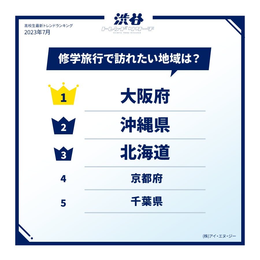 イマドキ高校生の最新!修学旅行調査Z世代が修学旅行で訪れたい地域&案内人になってほしい芸能人TOP10!今月のネクストトレンド「遠近法ハート」とは ?株式会社アイ・エヌ・ジーのプレスリリース。