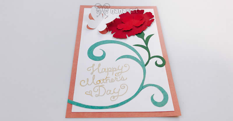 母の日 手作りカード 蝶々とカーネーションななのポップアップカード。