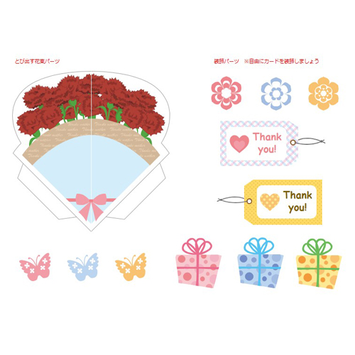 花束のポップアップカードの作り方 飛び出す・メッセージ・手作り・型紙保育士くらぶ。