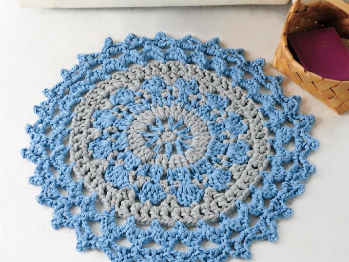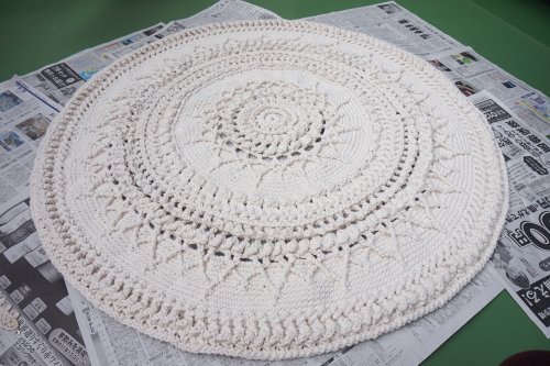 かぎ針編み図 Tシャツヤーンのドイリーラグ – 手編みウェア&雑貨の無料編み図 ATELIER *mati*。