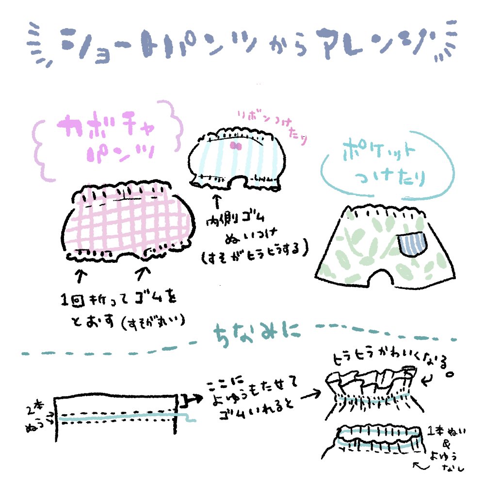 ふるえるとり on X: "100均の手ぬぐいで赤ちゃん〜幼児用ショートパンツ・かぼちゃパンツ をつくる方法です。型紙なし、ほぼ端のほつれ処理なし。「失敗なく簡単に作れる」を最優先したものです。ミシンだと20-30分で完成します。端の処理があまりないので手縫いでも作れ。