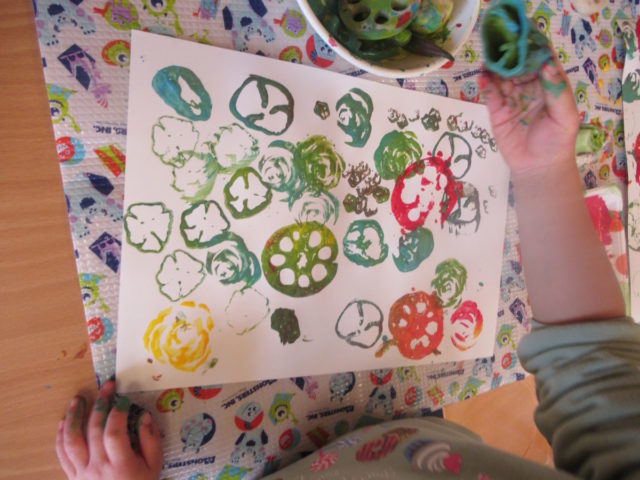 野菜スタンプ~ぱんだ組鹿骨おひさま保育園社会福祉法人えどがわ。