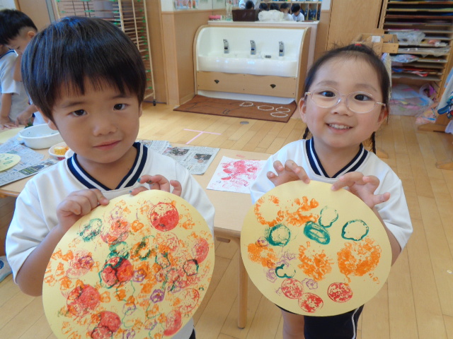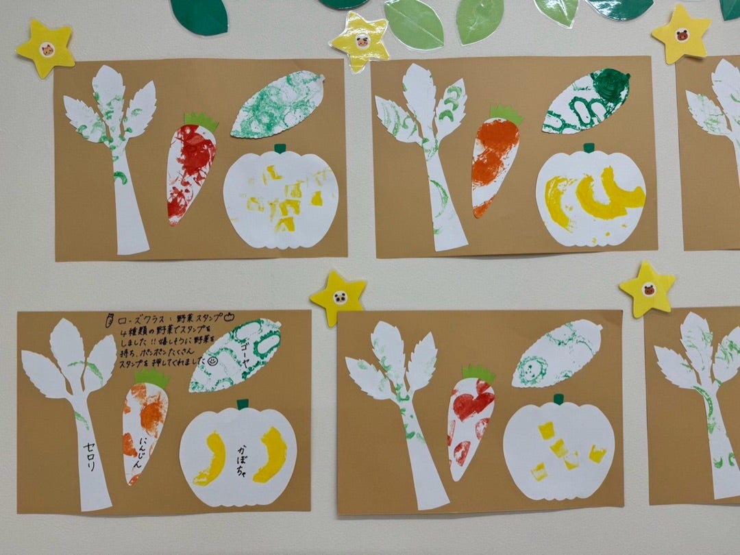 製作 野菜スタンプをしたよ!エクセレント武蔵新城保育園ブログ。