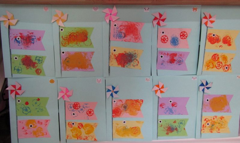 3歳児野菜スタンプ製作すえさみこども園 石川県小松市。