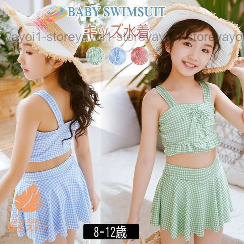 キッズ 水着女の子 セパレート スカート子供 水着 幼稚園 保育園チェック プリンセス女児用 水遊びジュニア キュート。