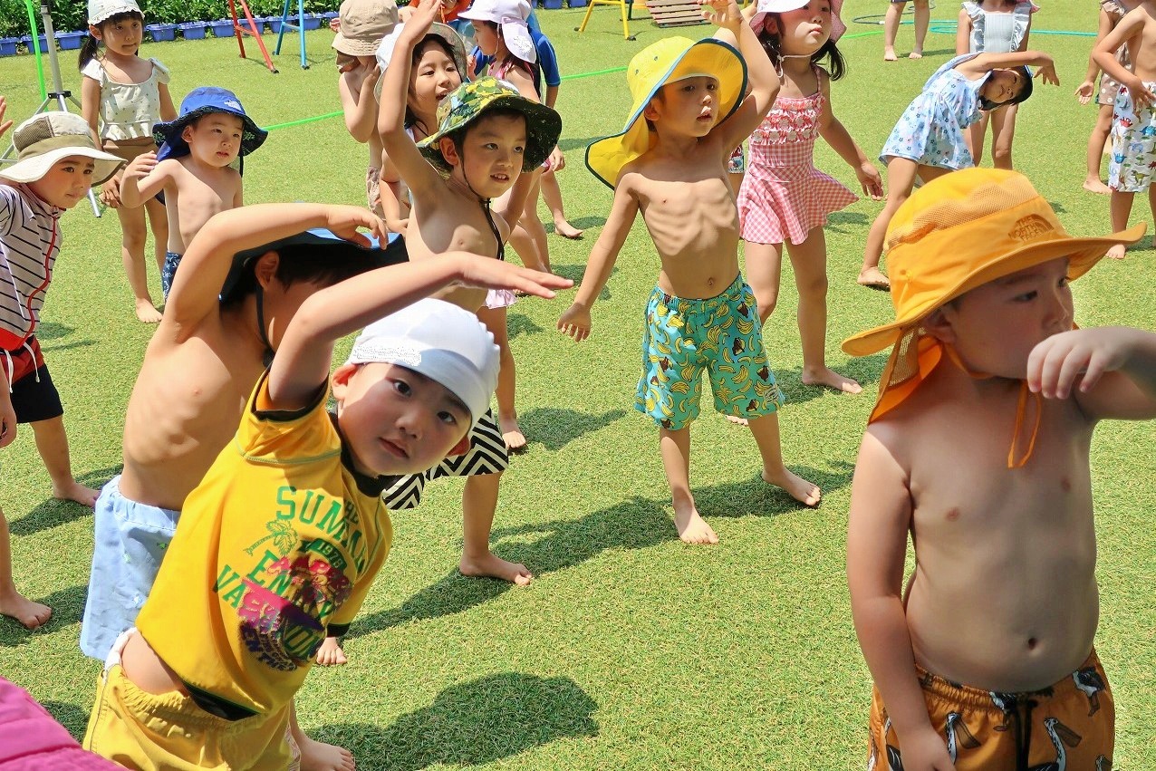 今年初めての水遊び 3歳児– 大成学園額田保育園。