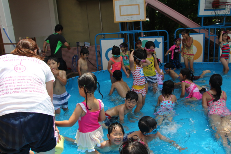 朝霞どろんこ保育園「楽しかった水遊び」保育・発達支援のどろんこ会。