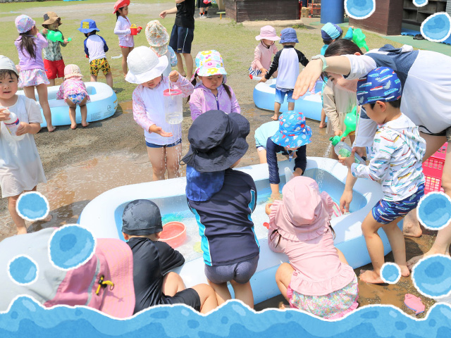水遊び らっこ組 園の日常みてみて!げんきな筑女っ子筑紫女学園大学附属幼稚園。