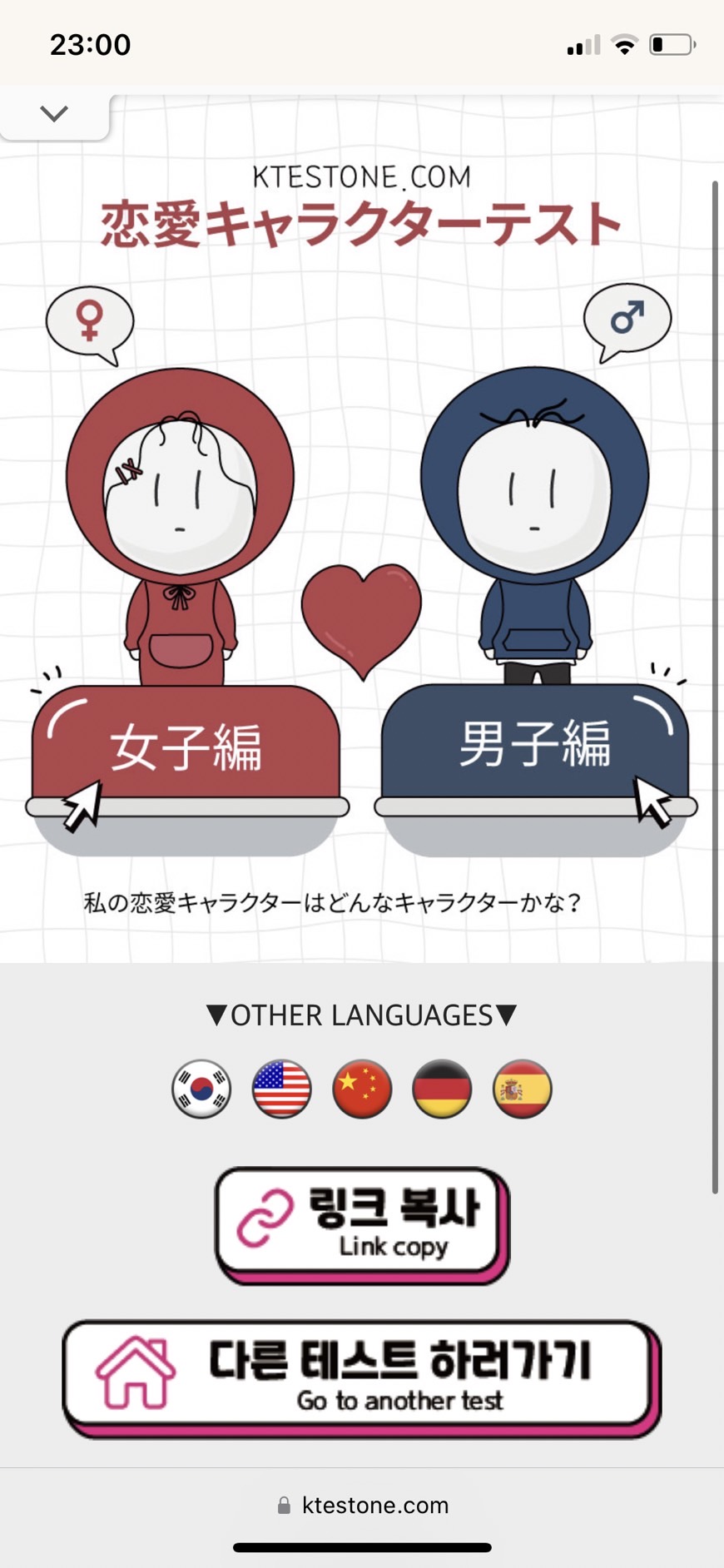 日本語版 恋愛キャラクターテストのやり方!女子編のサイト!韓国で話題!buzz trend。