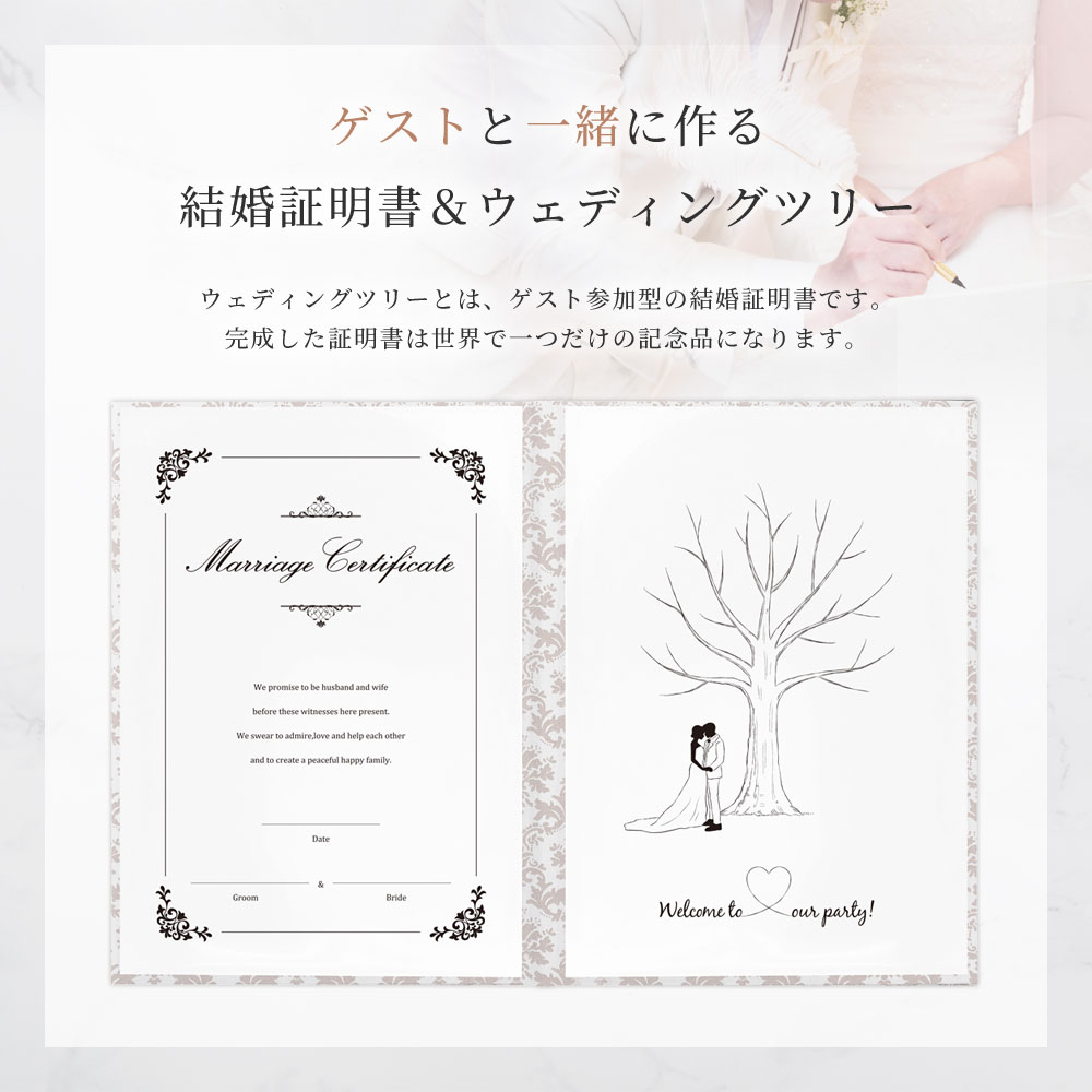 結婚証明書 ゲスト参加型 サイン 誓約書 誓いの言葉 チャペル式 結婚式 挙式 人前式 パーティかわいい 結婚証明書 ツリー サイン式ダマスク柄 友人・ゲストと一緒に作る証明書 台紙 ゲストのサイン アート 様々な式で使える結婚証明書 オリジナル 日本製結婚証明書。