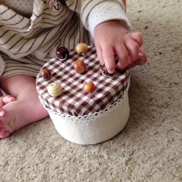 手作りビジーボード🧸 お家にあったものと100均のもので手作りしました!モンテッソーリ教育おうちモンテ生後6ヶ月6ヶ月ベビー手作り おもちゃ。