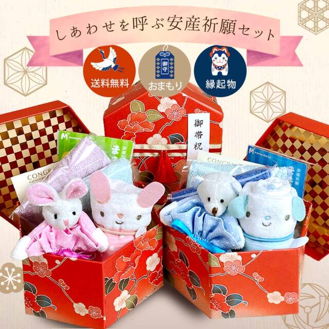 ギフト しあわせを呼ぶ安産祈願セット~安産お守り付き!帯祝いやご懐妊のお祝い・戌の日に~。