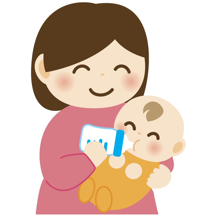 赤ちゃんにミルクを飲ませているお母さんのかわいいイラスト画像素材 無料 フリー。