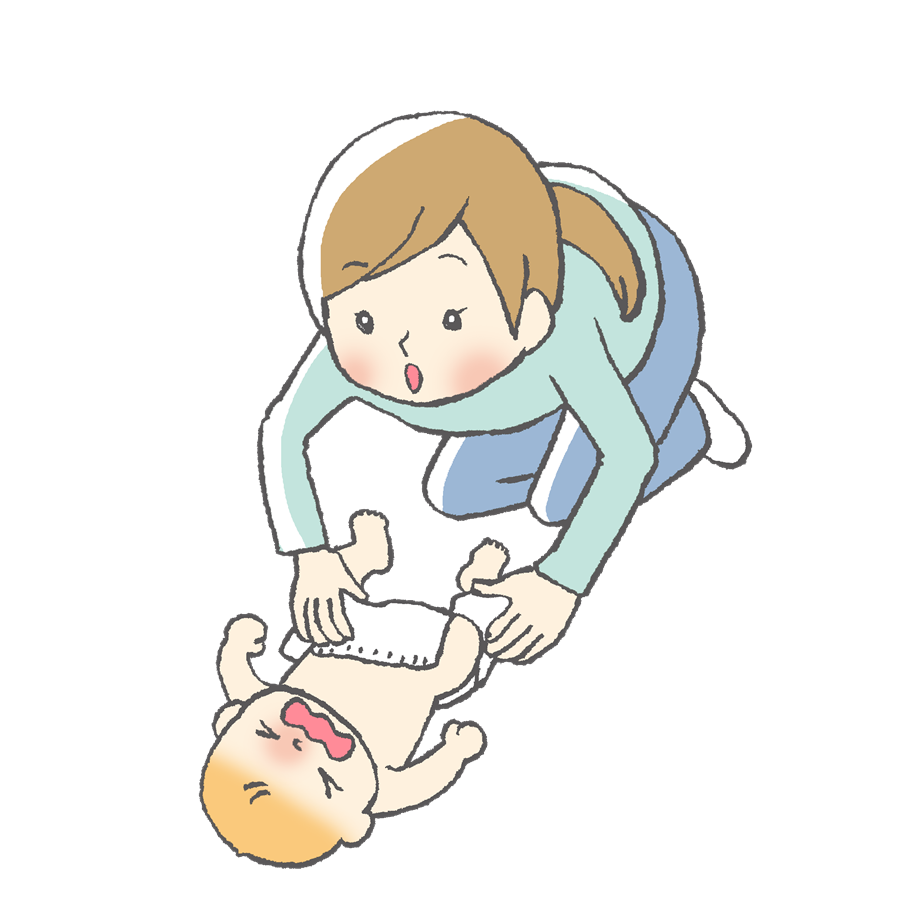 おむつをかえるお母さんのイラストフリーイラスト素材 ガガフリ。