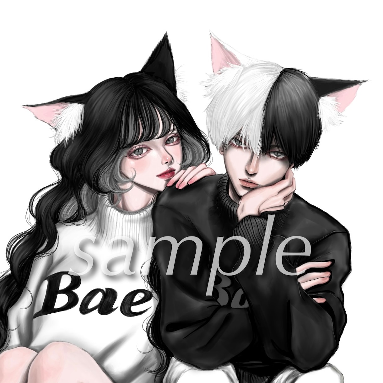 かわいいペア画・カップルイラストお描きします ✧︎コテキャシートも制作可能✧︎ココナラ。