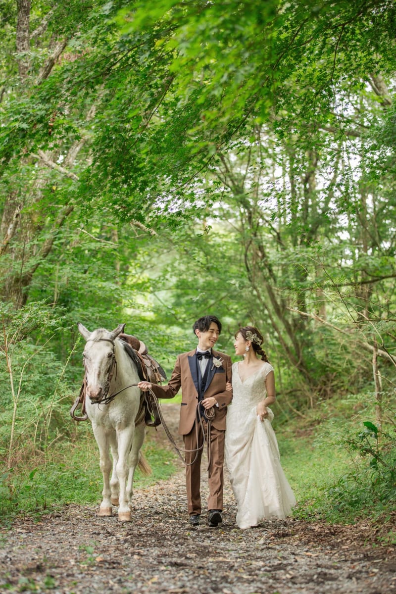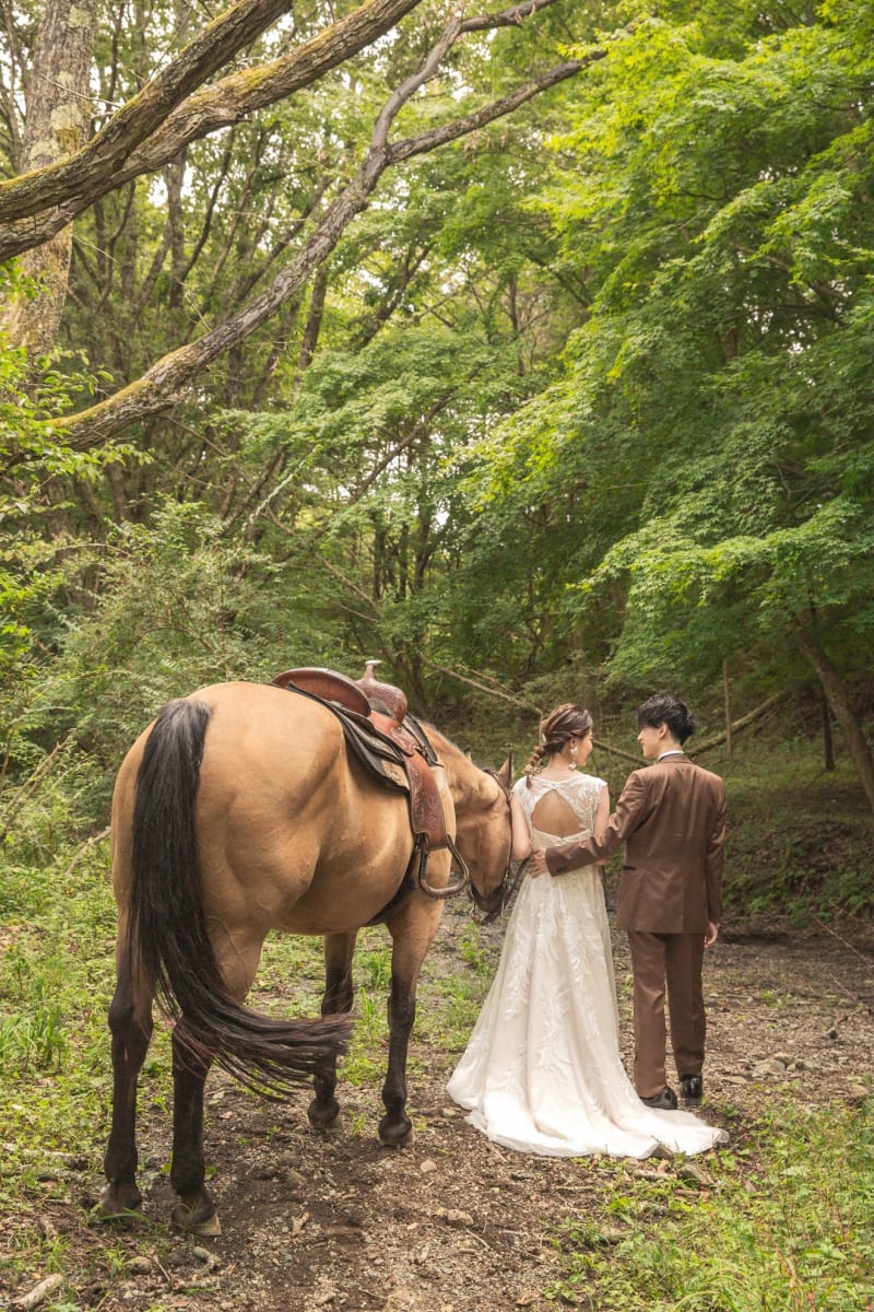 森の乗馬ウェディングフォト撮影レポ』 撮影日:2022年6月22日 乗馬場 STUDIO AQUA富士店 スタジオAQUA の撮影レポート Photorait。