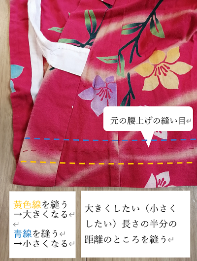 新!腰あげの調節方法1印付け~縫う前まで子供着物。