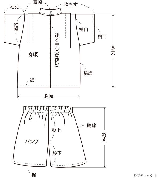 甚平のサイズ直し&アレンジ 肩上げとかぼちゃパンツ化- にこにこそだて。