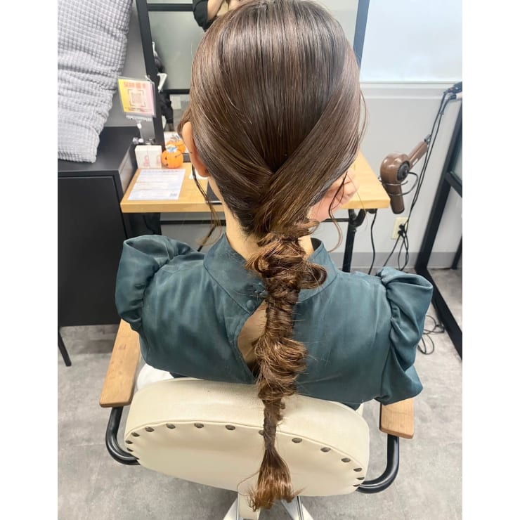 ポニーテールアレンジ⭐️ 結婚式参列、イベント、式典など どんなヘアメイクも対応しています😊編みおろし アレンジ パーティセット ヘアアレンジ結婚式セット ねじり編み 裏編み 編み込み 三つ編み お呼ばれヘア ヘアセット 簡単ヘアアレンジ 福岡 糟屋郡 志免町。