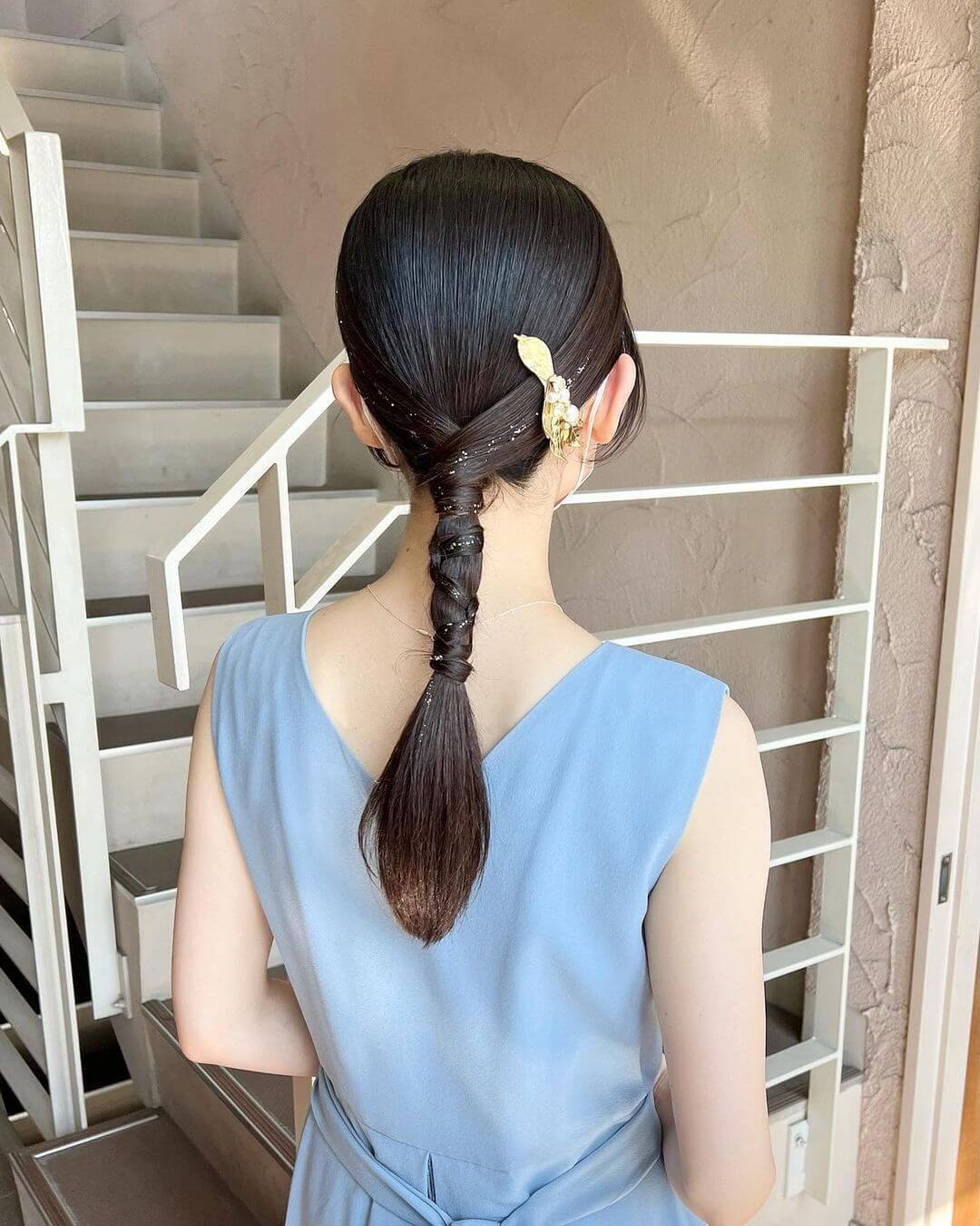 結婚式に最適なストレートローポニーのヘアアレンジ。