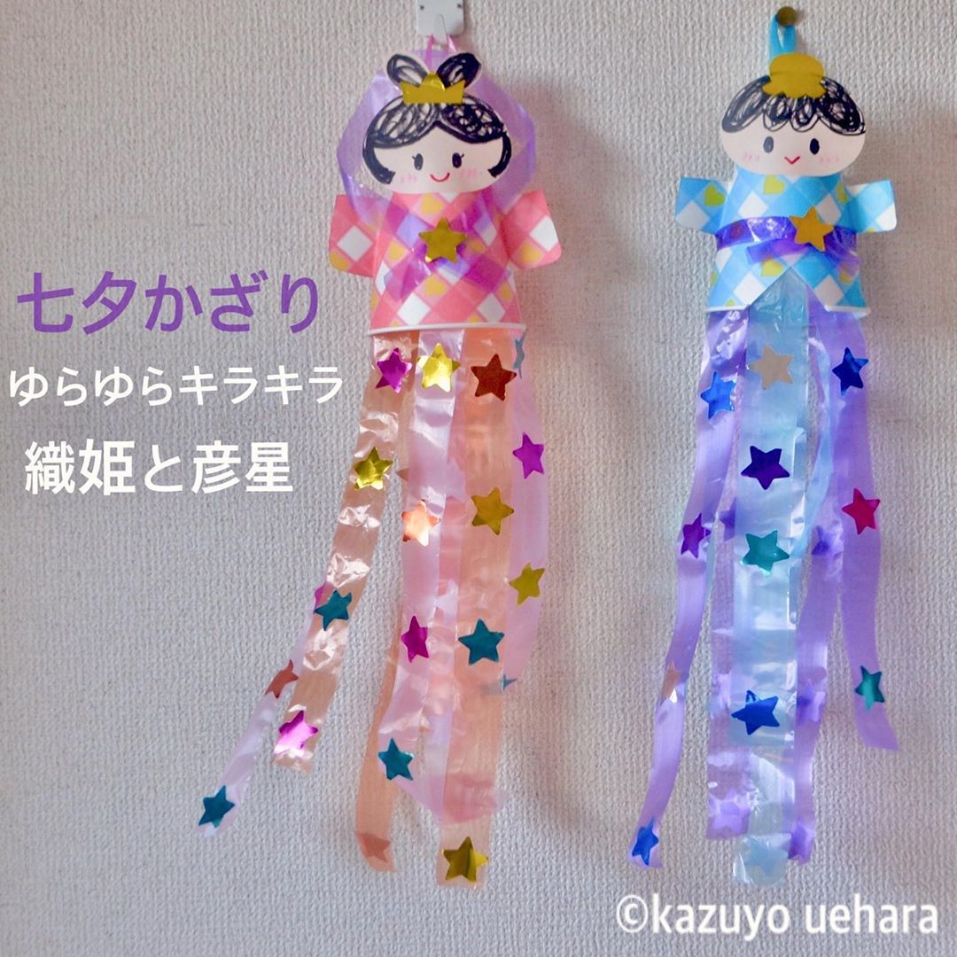 七夕製作「ゆらゆらかわいい織姫と彦星」 0歳児~5歳児 年齢別アレンジ。