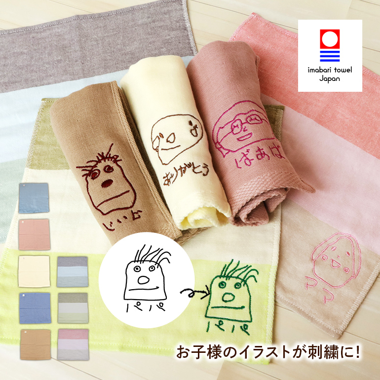 楽天市場 子供の絵 刺繍 今治タオル ハンカチ 敬老の日 父の日 母の日 子どもの絵 イラスト プレゼント 似顔絵 孫 子ども 子供 こども 刺しゅうハンドタオル タオル 誕生日 お祝い 記念日 還暦祝い 長寿 手描き 贈り物 ギフト 日本製 綿100% 入園 卒園 名入れ :。