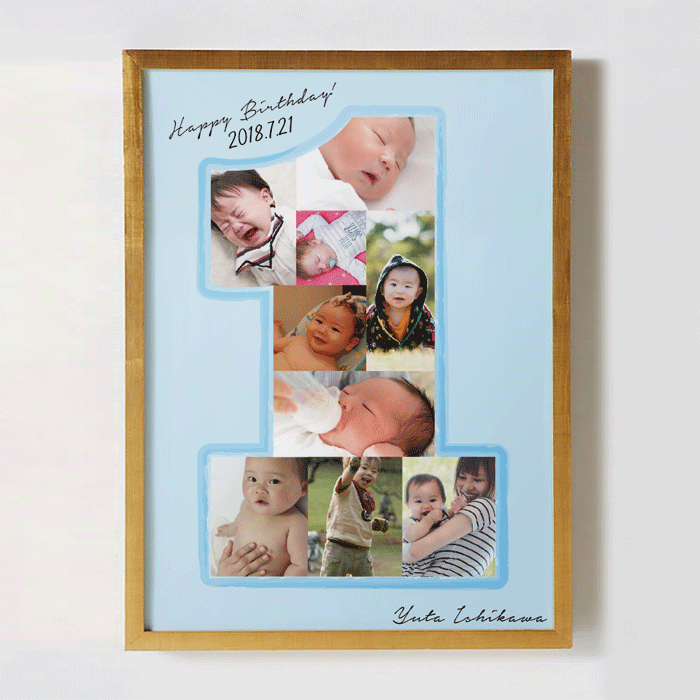 1歳誕生日 思い出の写真で作るフォトデザインボード -とくべつをつくる雑貨店メモリアルグッズのオーダーサービスおしゃれな名入れギフト・手形アート・出産祝いのオリジナル注文通販専門店。