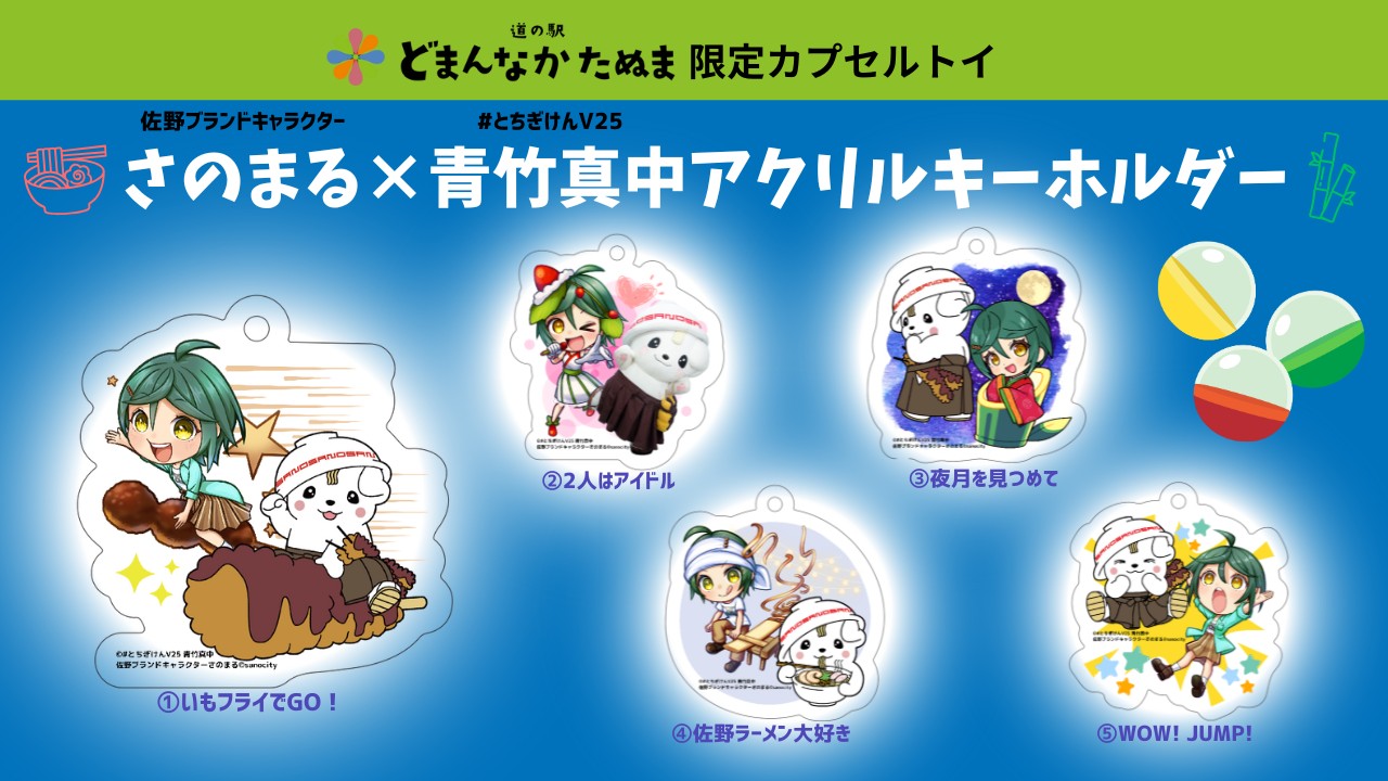 さのまる×青竹真中アクリルキーホルダーがカプセルトイで登場!佐野の道の駅「どまんなかたぬま」限定設置「 とちぎけんV25」official web。