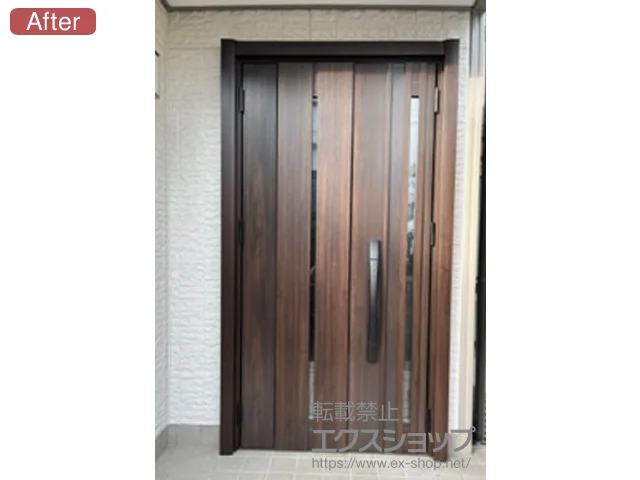 静岡県沼津市のLIXIL リクシル トステム 玄関ドア施工例 リシェント玄関ドア3 断熱K4仕様 親子仕様 ランマ無 外観左吊元 M12型※FamiLock仕様:115957611-1。