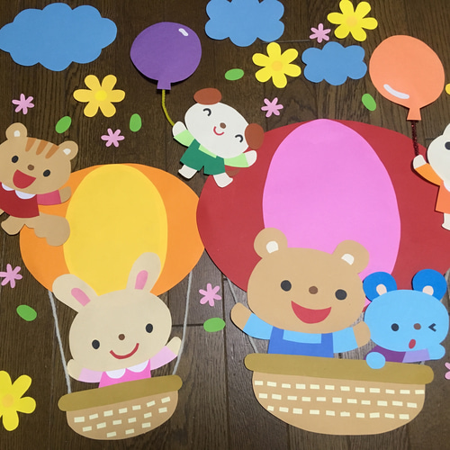 気球☆動物たちの壁面飾り♪大きめサイズ - yururiの保育素材屋さんminne byGMOペパボ 国内最大級のハンドメイド・手作り通販サイト。