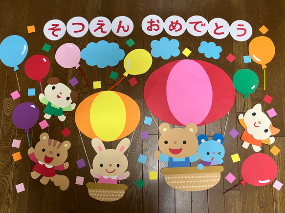壁面飾り 特大サイズ 卒園 入園 気球 春 夏 ☆大きな壁面飾り☆卒園おめでとう 春 気球 風船 幼稚園 保育園 施設 病院 -NAKAYOSHI6'S GALLERYminne byGMOペパボ 国内最大級のハンドメイド・手作り通販サイト。