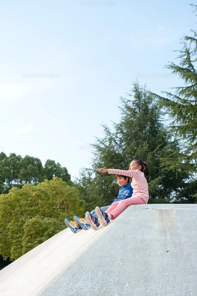 公園の遊具で遊ぶ子供のカップル 10248004370 の写真・イラスト素材アマナイメージズ。