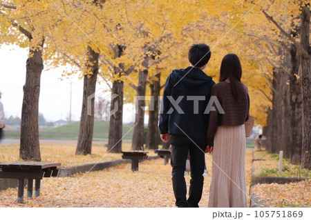 秋の公園で遊ぶカップルの写真素材105751869- PIXTA。