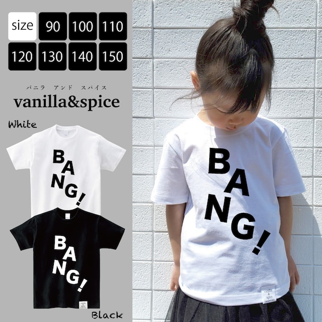 BANG! ロゴ プリント 半袖 Tシャツ ホワイト ブラック キッズ 子供服 vanilla&spice レター バンvanilla &spice バニラ&スパイス。
