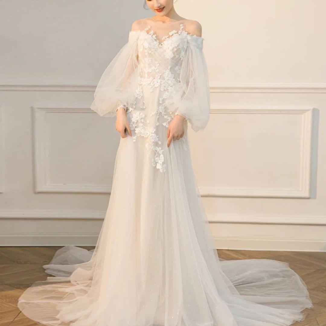 新品未使用 気品香る 極上レースウェディングドレス 結婚式 前撮り フォトウェディングに。