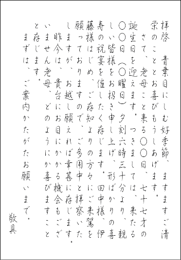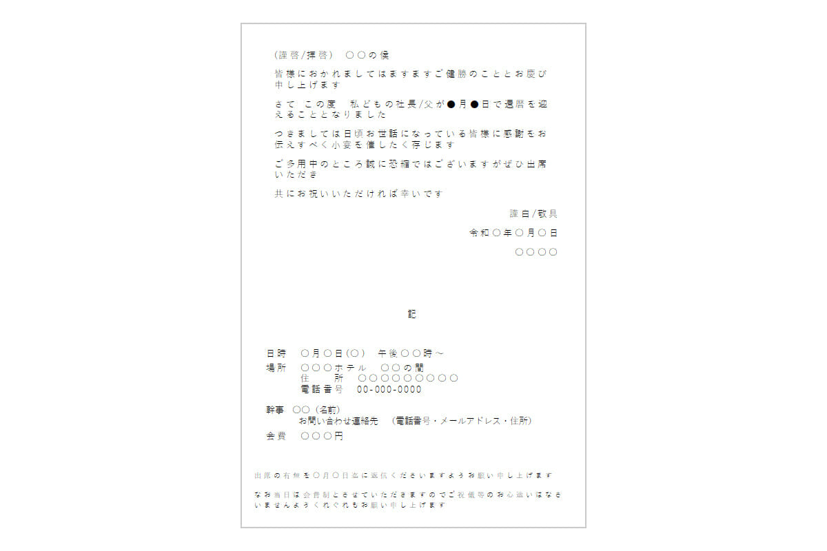 招待状・案内状 賀寿・還暦・米寿など 文例1枚~即日印刷プリントメイト。