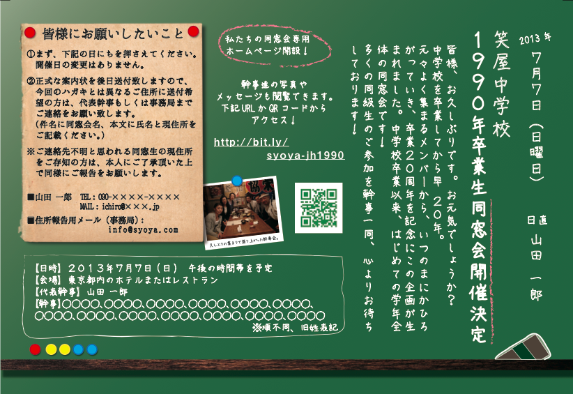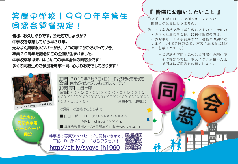 同窓会のプロが教える案内状テンプレ30種 往復はがき含む。