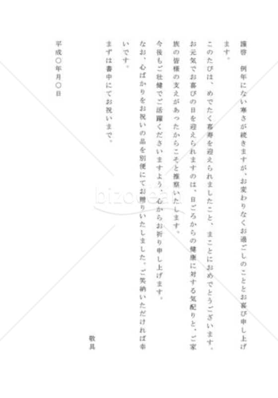 長寿の祝い状02 本人宛 bizocean ビズオーシャン。