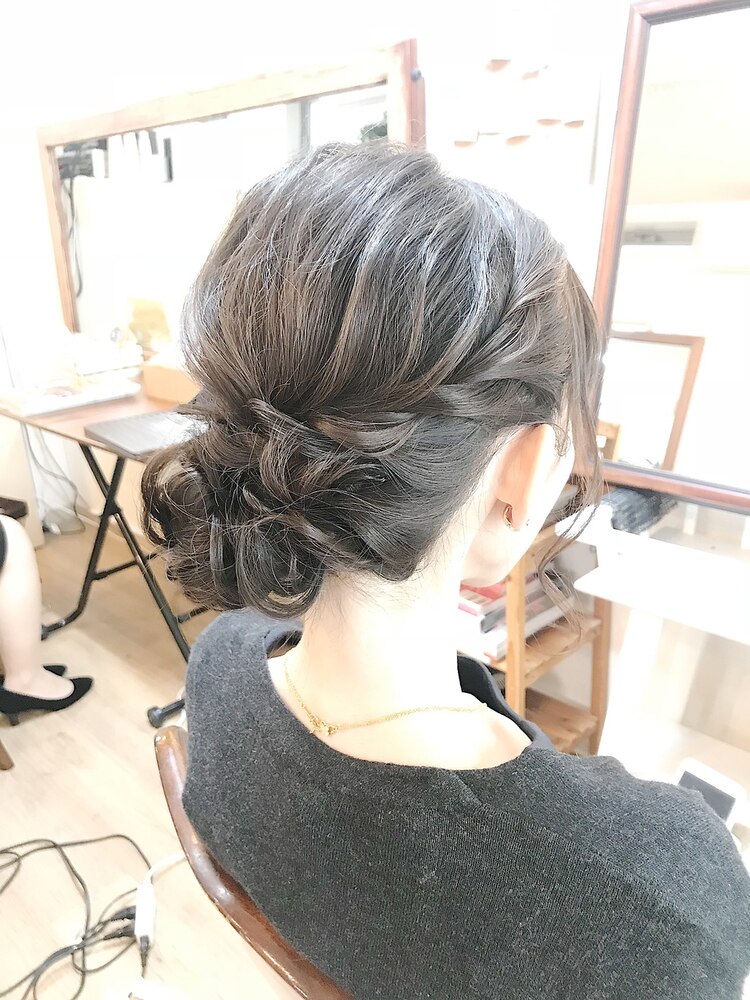 サロン 定番ゆるふわシニヨンで結婚式へ♡京都 ヘアセット・メイク・着付・ブライダル・ロケーション撮影専門店 Rola。