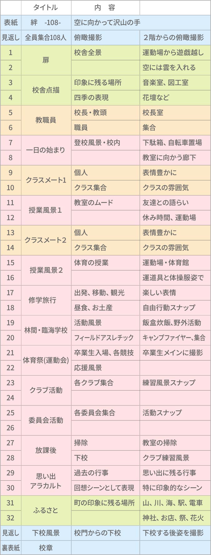 卒園アルバム工房 重視したい項目別!ページ構成例。