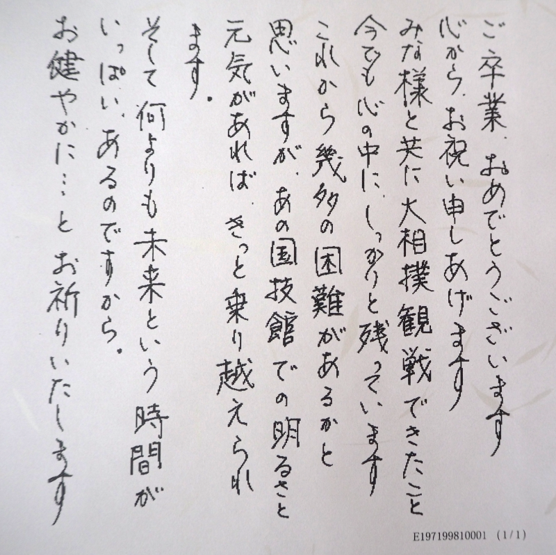 卒業生への心温まるお祝いメッセージ!行田市立南河原中学校。