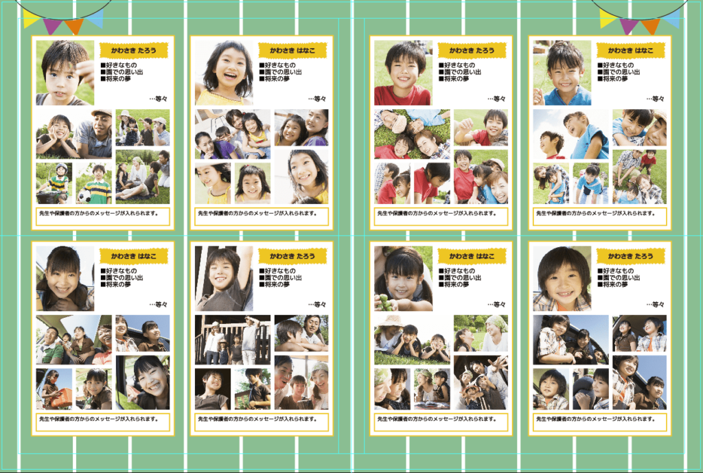 先生のメッセージ付き紹介ページのデザイン・レイアウトのアイデア2卒園アルバム.com株式会社夢ふぉと。