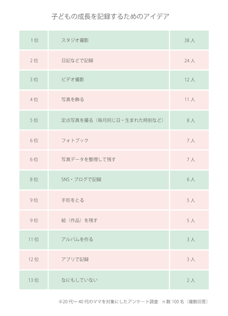 100人に聞きました!子どもの成長を 記録するためにやっていることPINTOスタジオアリス。