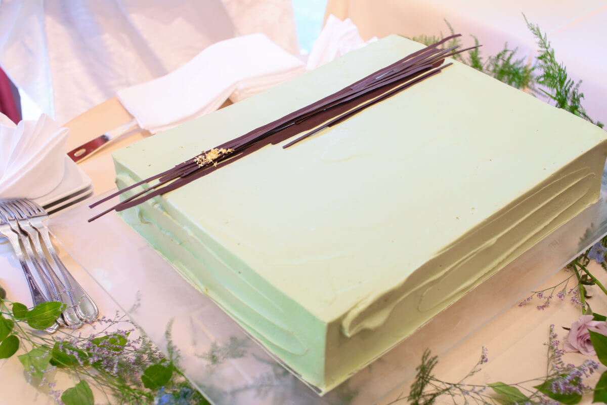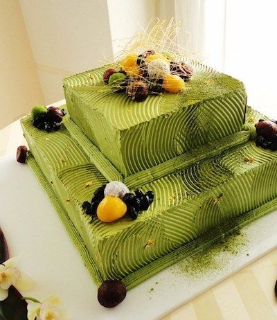 祇園辻利さんの抹茶を使った ウェディングケーキ。 見た目も華やかで、 京都らしさを出す演出にぴったり。 写真映えすること間違いなしです😊他にも辻利さんの抹茶を使用した 「もえぎ」という商品がございます。 こちらは引菓子としてもご用意可能で、 皆様からご好評。