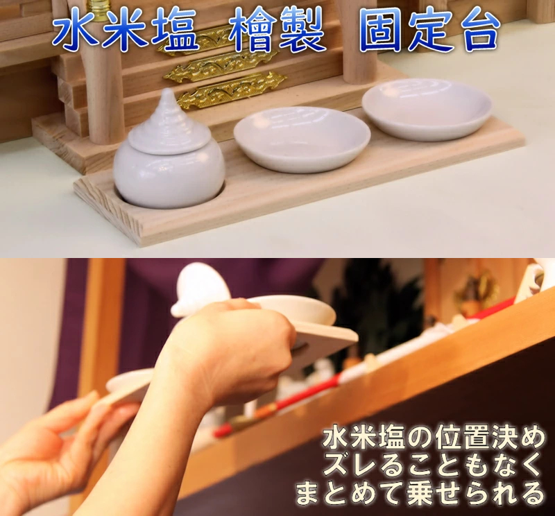神棚へのお供えが変わる ともかく楽になって丁寧になる水米塩の固定台 - 神棚 上敷き 簾の専門店 おまかせ工房 ブログ。