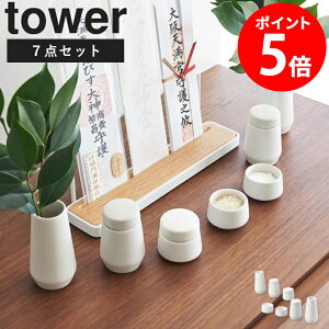 dショッピング神具 タワー 7点セット山崎実業 tower 神具セット 神具 水 米 塩 小 水玉 蓋付き 瓶子 榊立 榊 皿 器 お供え神棚用 食器 お供え物 榊立て 家庭用 陶器 白皿 みずたま お正月 おしゃれ。