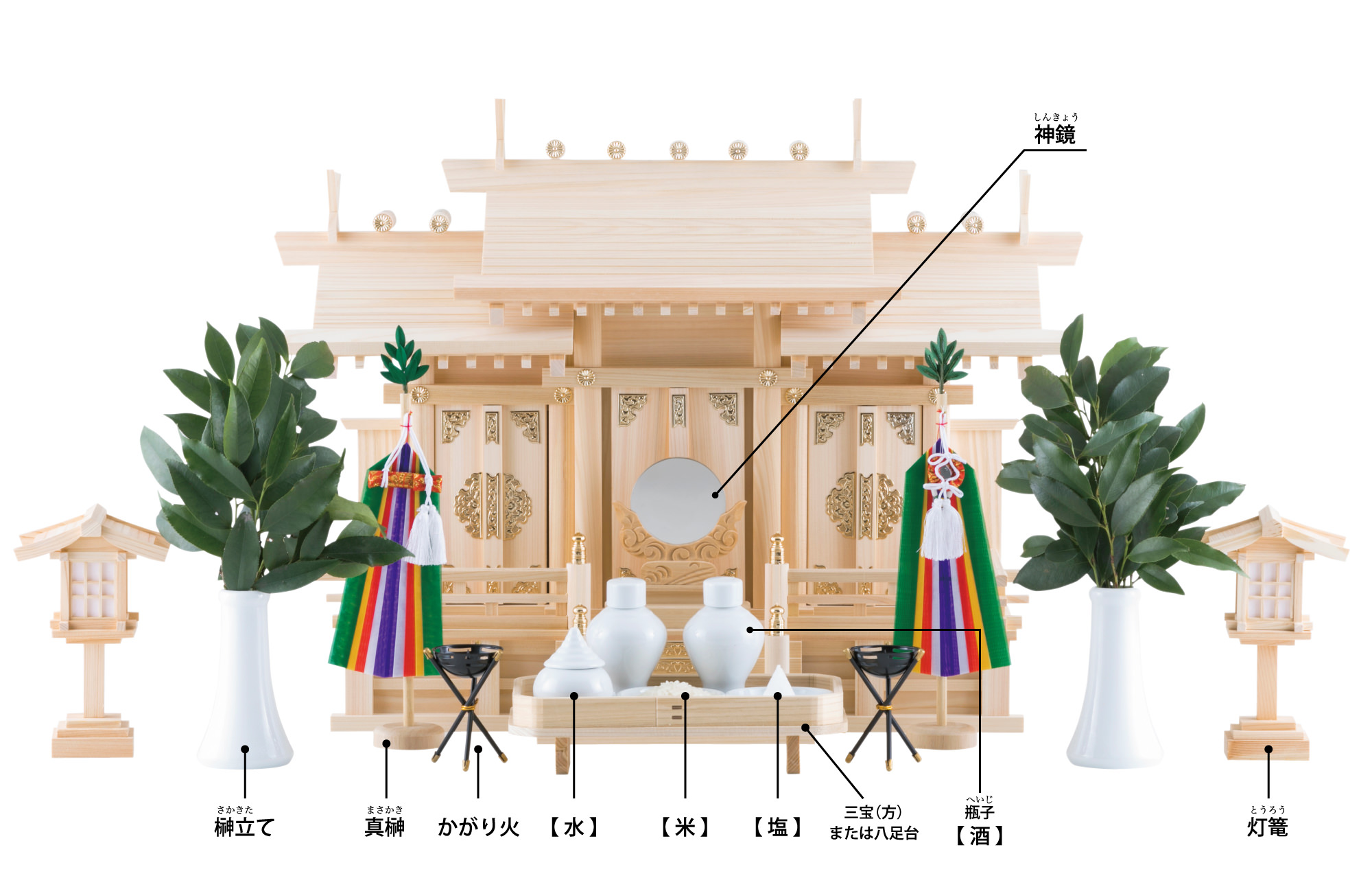 神具などお供え物はどう飾る?神棚の祀り方 配置 を画像で解説お仏壇のはせがわ 公式。